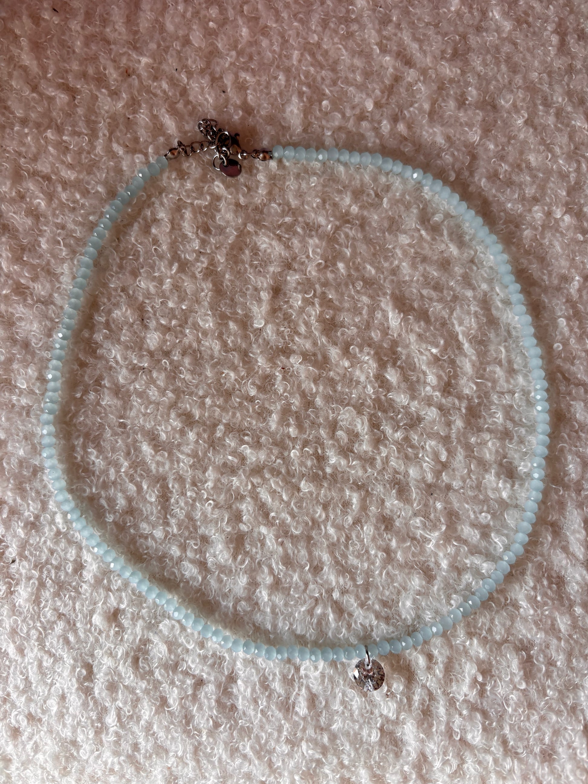 Collier de perles bleu et pendentif en strass 💛